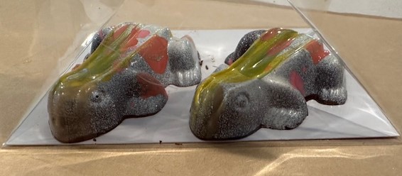 Poison Frogs, dark chocolate with caramel apple filling ($5.50 for bag of 2)